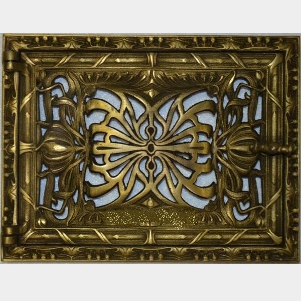 Они очень отличаются от других решеток своим стилем и узором. Каминные дверки изготавливаются путем литья алюминия, либо чугуна с дальнейшей обработкой и покраской вручную. Покрываются дверки окисью латуни, или графитом, что придает изделию неповторимый оттенок.