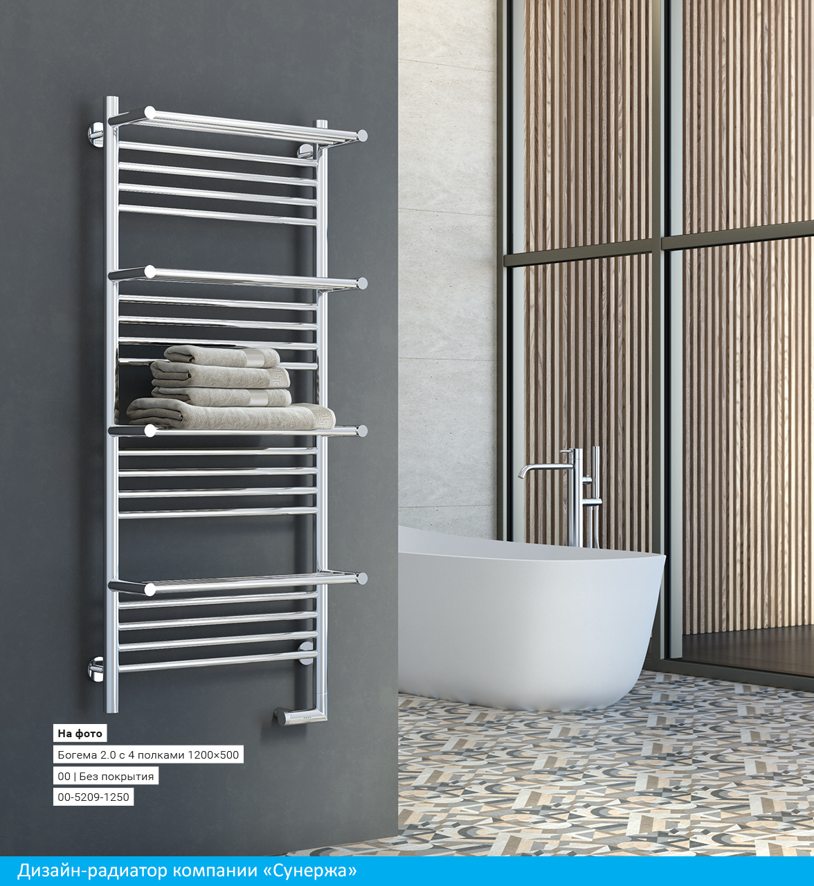 Полотенцесушитель электрический Сунержа Богема 2.0 с полкой 1200x400