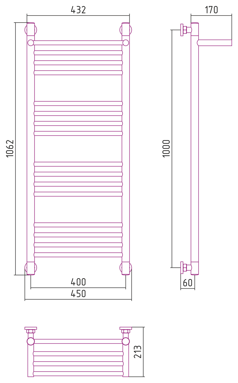 Внешние габариты (высота х ширина х глубина) (мм) : 1062x450x213