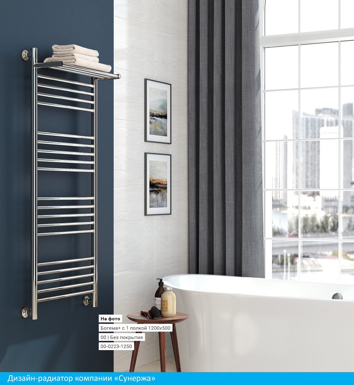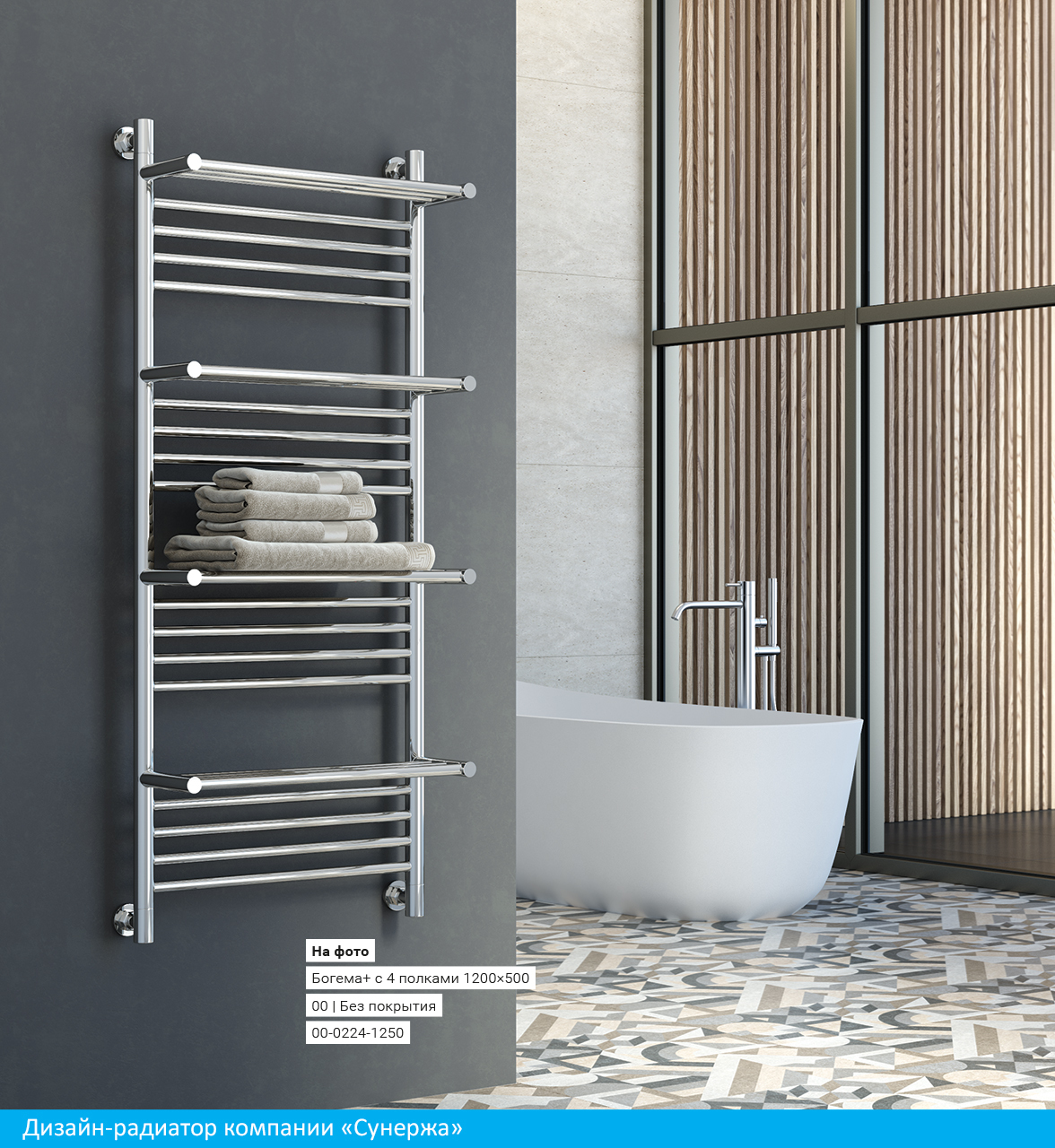Изящным штрихом к уже знакомой вам модели «Богема» стала дополнительная полочка, которая гармонично вписана в конструкцию изделия. Благодаря повышенной теплоотдаче дизайн-радиатора сушить головные уборы и обувь теперь удобно, комфортно и быстро. Модель дизайн-радиатора предусматривает одну или четыре полочки в зависимости от ваших требований.